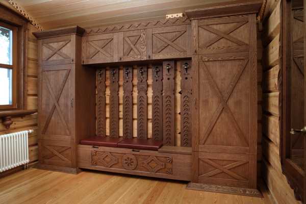 Деревянная перегородка с двумя нишами, что выглядит замечательно.