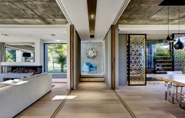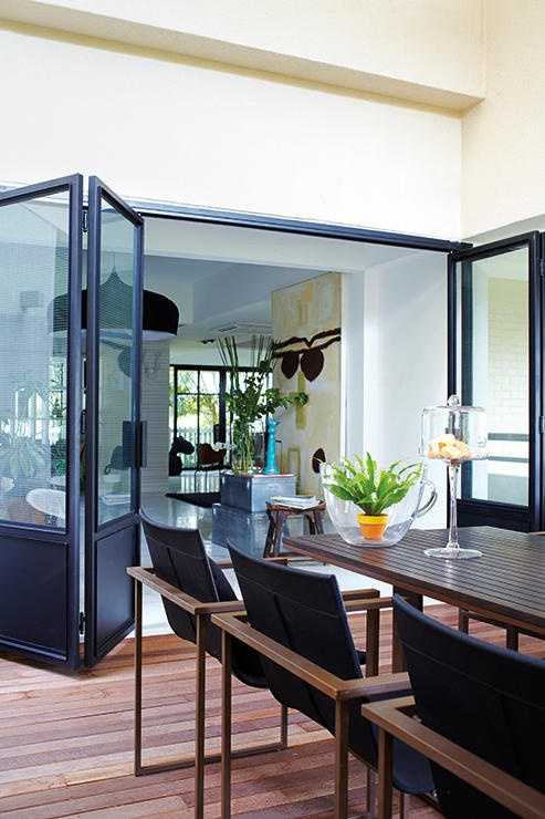 Стеклянная раздвижная перегородка, отделяющая гостиную от столовой