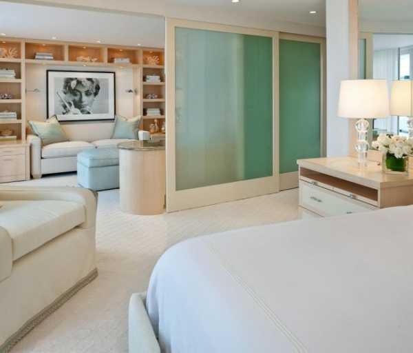 Перегородка в светлом цвете станет просто находкой для интерьера спальной.