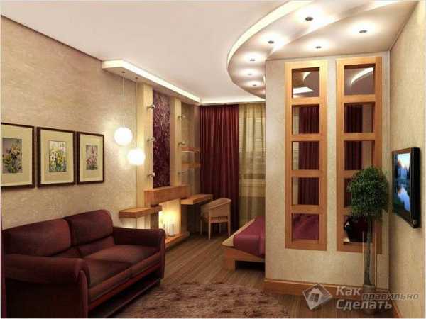Когда приходится делить комнату на две части, хоть и визуально, то стоит позаботиться о том, чтобы это было красиво. Поэтому должна использоваться декоративная перегородка из гипсокартона для зонирования комнаты, а не простая прямоугольная конструкция, ничем не отличимая от обычной стены.