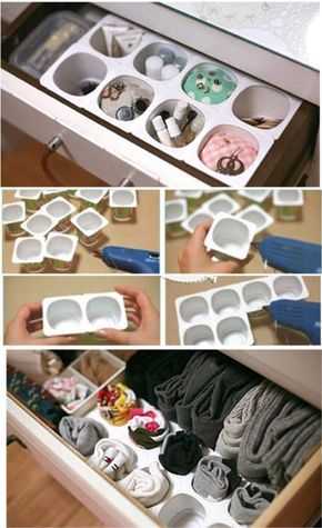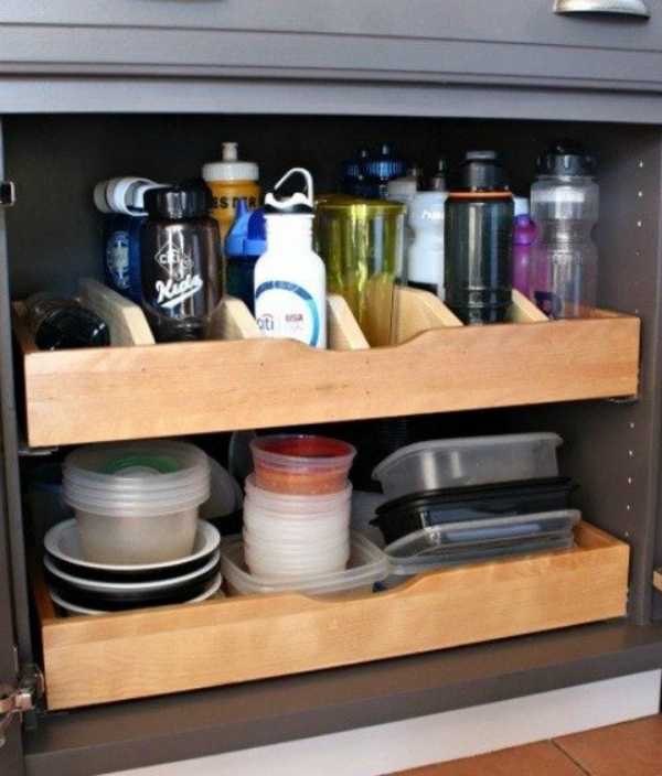 Для того, чтобы стать с порядком на ты, подойдут разделители полок. Купленные в магазине редко подходят по размеру и стилю, поэтому истинным поклонникам порядка рекомендуется все же сделать функциональные разделители своими руками. Они подойдут для хранения кухонных приборов и посуды, мелких аксессуаров и головных уборов, украшений и белья.