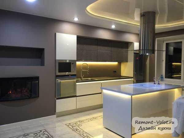 Островной гарнитур вряд ли будет создавать проблемы с размещением бытовой техники. Если встроить в остров, то можно сохранить единое стилистическое пространство, не испортив интерьер кухни не вписывающейся в него СВЧ-печью.