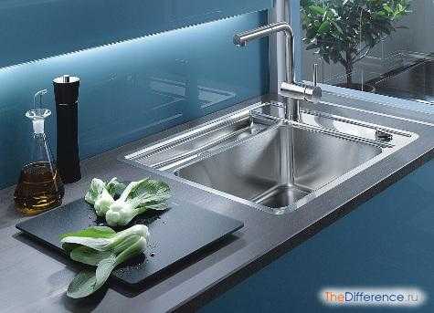 Основным отличием данных видов моек является тип установки. Если накладная раковина «надевается» сверху на подготовленную для нее тумбу и является отдельным кухонным модулем, то врезная попросту «погружается» в подготовленное для нее отверстие в столешнице.