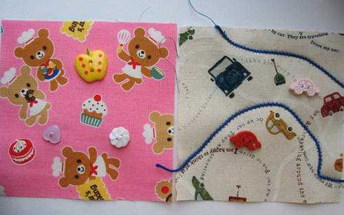 - швейная фурнитура — ленточки, шнурки, крупные пуговицы, бусинки, кнопки, термические аппликации;
