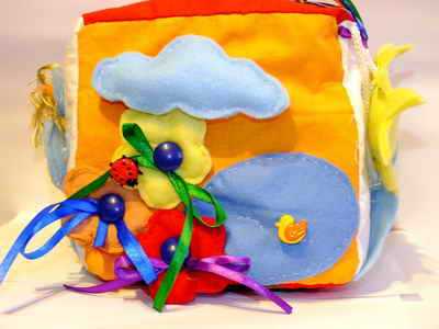 Во время изготовления игрушек, важно следить за тем, чтобы все мелкие предметы (кнопки, пуговицы, бусинки) были крепко пришиты. Для этого их нужно проверить на себе, и только потом предложить вещь ребенку. Лишний раз убедитесь, легко ли расстегивается замок на молнии, не оторвутся ли бусинки, не разорвутся ли сшитые стенки кубика.