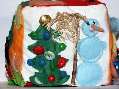 Декорируются стороны кубика в зависимости от фантазии бусинками, пуговицами. Изнутри кубик можно наполнить синтепоном, ватой или любым другим шуршащим материалом.