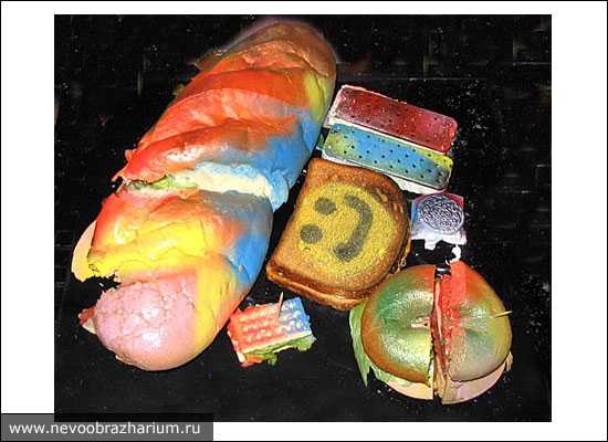 Эти креативные гамбургеры придумали двое графических дизайнеров Томас Вейл и Квентин Вайсбух из Парижа. Из случайной идеи их творчество переросло в настоящий полноценный проект Fat&Furious Burger, которому они посвятили сайт и даже книгу, где размещены фотографии этих шедевров. Для них еда – это своеобразный холст, где можно творчески изобразить проблемы современного общества и культуру различных стран.