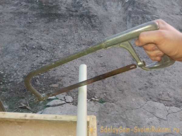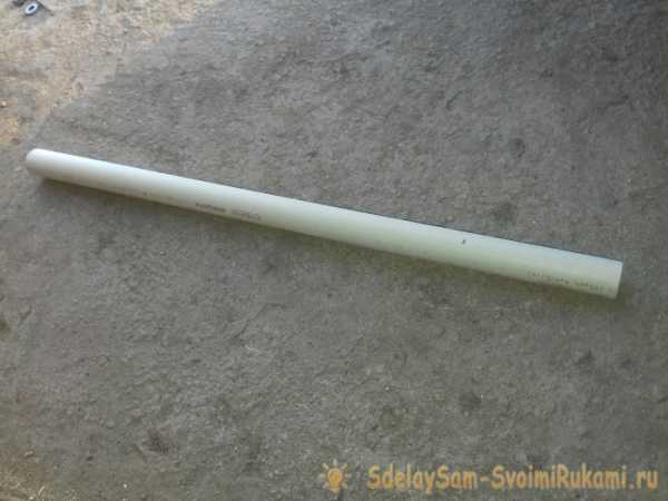 - Потом нужно подобрать трубку или жёсткий шланг из пластика подходящего к оси лифта внутреннего диаметра. Трубку придётся отрезать по удобной для вас высоте кресла (это сделано на первом шаге). Для этой цели можно воспользоваться водопроводной трубкой из металлизированной пластмассы.