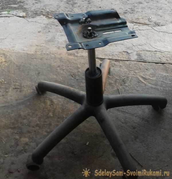 - Нужно снять крестовину и отсоединить патрон от пиастры, предварительно открутив сидение.