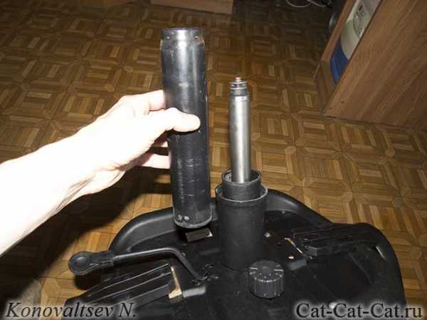 Для ремонта или замены газового лифта нужно разобрать кресло полностью. Процесс описан в первой части статьи (ремонт крестовины офисного кресла). Установить новую деталь намного проще чем извлечь сломанную, главное, без необходимости не бить молотком.