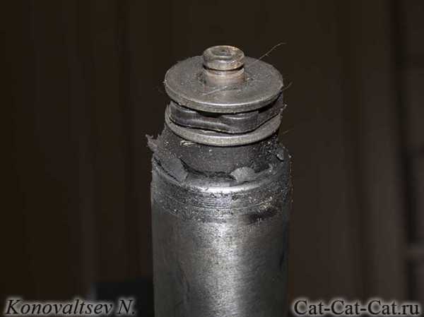 Если диаметр трубы будет больше, то в нее может проскочить основание амортизатора. Ножовкой по металлу нужно отпилить необходимый кусок трубы. Затем надеть эту трубу на шток амортизатора так, чтобы она уперлась в основание амортизатора.