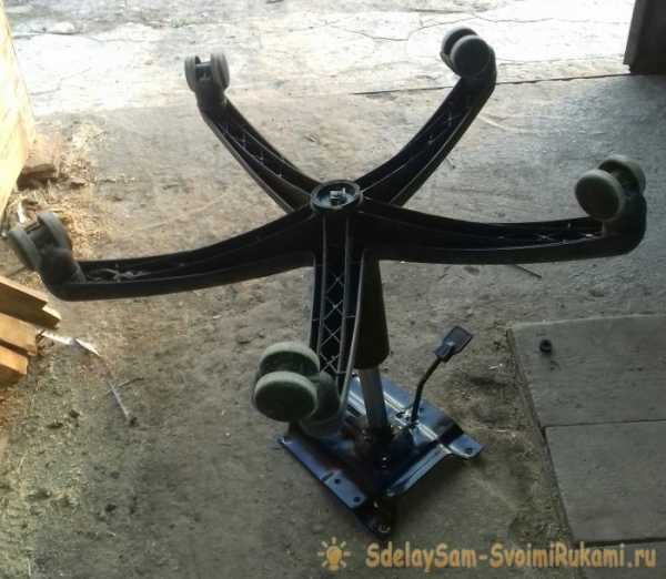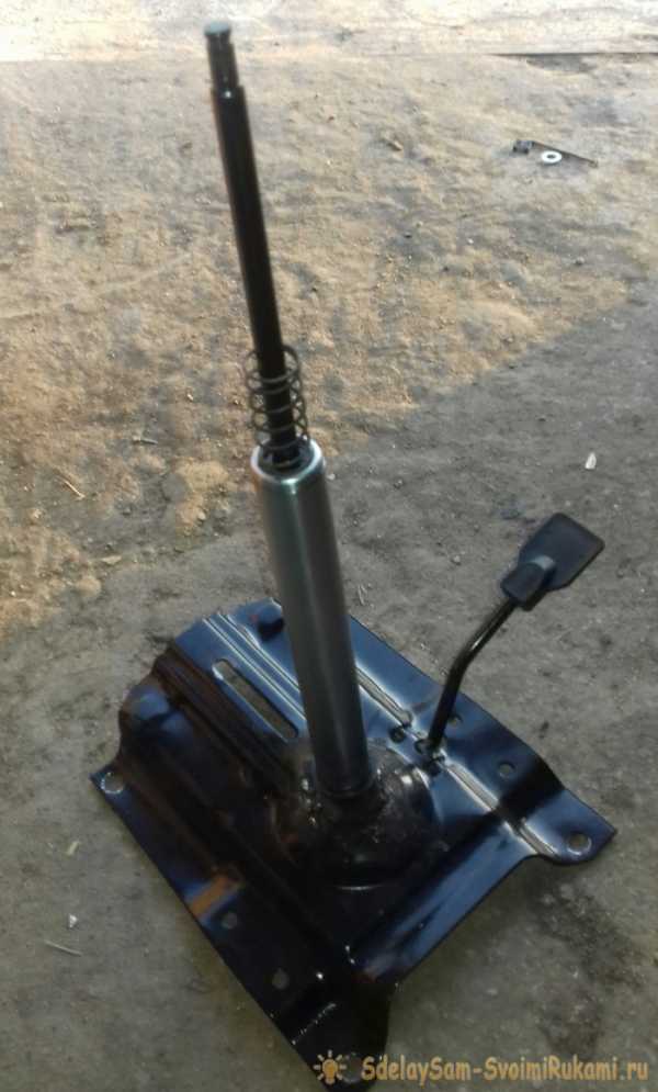 Чтобы кресло не было слишком жестким, между трубой и основанием амортизатора можно подставить пружину. После этого собрать все части в единое целое в том же порядке, в котором оно разбиралось.