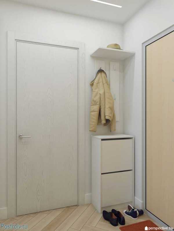 Недорогой и светлый дизайн квартиры 36 кв.м начинается с прихожей.