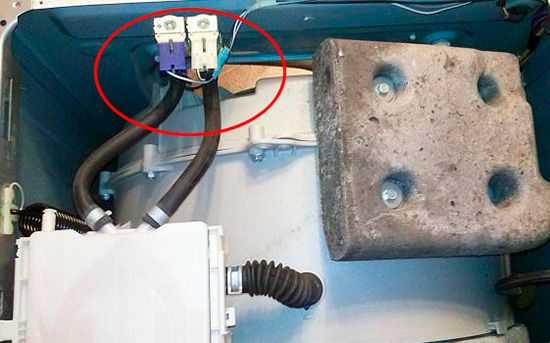 - Отсоединяем провода, идущие к дверце барабана.