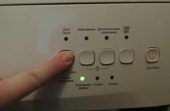 - Не запускаются программы и режимы, а индикаторы мигают все одновременно. Либо лампочка горит, а СМА не начинает стирку.