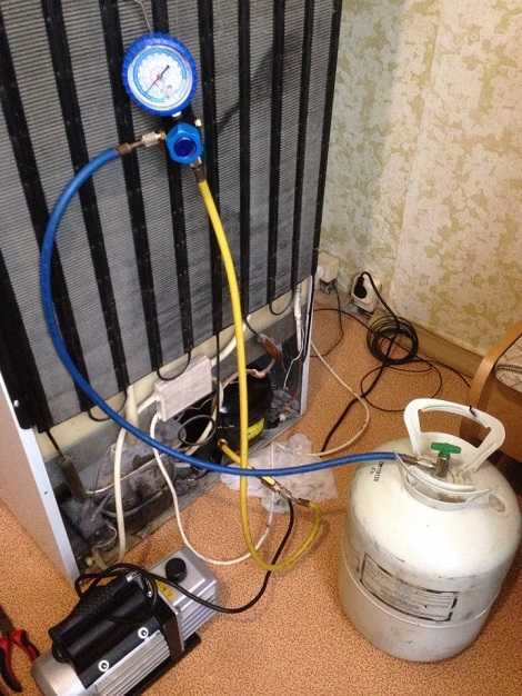 Если возникла утечка газа из системы, нужно найти и запаять место утечки, затем по новой заправить холодильник хладагентом.