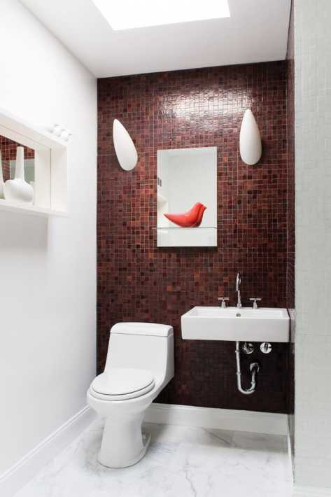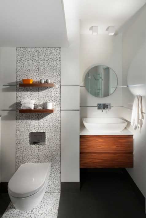 Другие варианты оформления стен в санузле представлены на фото:
