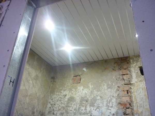Если на потолке имеются неровности, то можно выровнять его гипсокартонным листом, что позволит сделать натяжной потолок и обеспечить помещение точечным светом. Однако, натяжной потолок чаще всего монтируется сразу даже на кривую поверхность, что удешевляет ремонт.