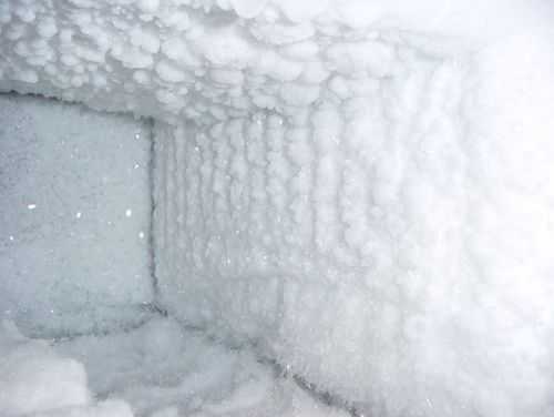 - Налет снега и наледь превышают 2-3 мм. Нарушен теплообмен в холодильнике. Немедленно разморозьте агрегат.
