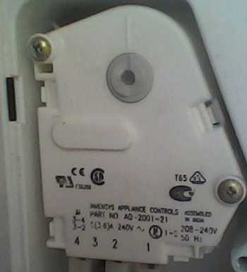 На фото ниже, таймер оттайки, он руководит процессом разморозки морозильного испарителя. Обычно промежуток между включением тэна оттайки, составляет от 8 до 12 часов, это зависит от того сколько двигатель холодильника проработал, то есть учитывается суммарное время работы компрессора. Кстати заменителем этого таймера, может быть часовой механизм с Аристона или Стинола, тут надо заметить, что это практически одни и те же холодильники. Проверить таймер оттайки, очень сложно, для этого надо создать целую конструкцию со звонком, то есть делаем следующую вещь. Надо подсоединить в цепь, что-то типа сигнализации, то есть сделать так чтобы, когда часовой механизм войдёт в оттайку, он нам про это громко бы просигнализировал