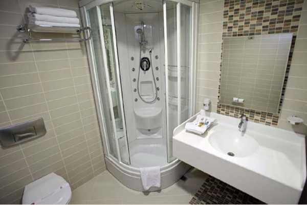 Душевая кабина с высокими бортиками успешно заменяет ванну