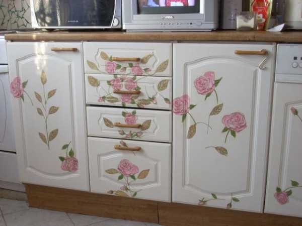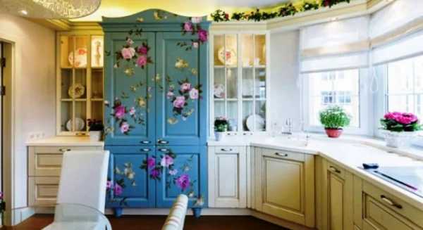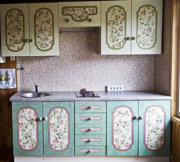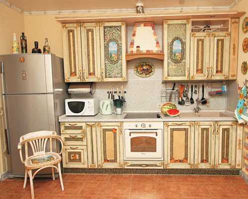 - наиболее часто выполняется отделка мебели для кухни, так как прованс для этого помещения выбирается нередко, а обусловлено это формированием уютной и спокойной обстановки, способствующей приятному и размеренному процессу готовки и принятия пищи;