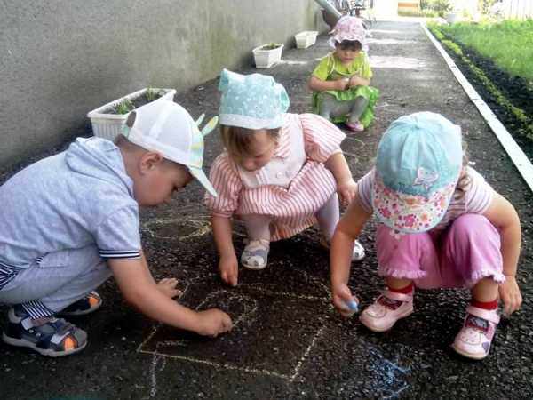 В любом случае, выходя на прогулку, всегда берите с собой асфальтные мелки. Для маленького ребенка удобнее будет рисовать более толстыми и длинными мелками. А деткам постарше лучше всего дать маленькие кусочки. И чем больше цветовая гамма будет в вашем наборе, тем красивее и красочнее получатся рисунки. Пусть ребенок сам решит, что ему рисовать, а вы поддержите его идею и тоже займитесь с ним творчеством. Изображайте необычные яркие цветы, красочных бабочек, птиц и божьих коровок. В общем, все то, что интересно крохе. Малыши с удовольствием дорисуют мамины картины. К примеру, мама рисует облачко, а ребенок пусть изобразит дождик. Еще можно нарисовать различные геометрические фигуры, к примеру, круг или квадрат, а дите пусть дорисует их так, чтобы они стали похожи на какой-либо предмет — мяч, яблоко или телевизор. Отличным занятием для развития мелкой моторики является штриховка!