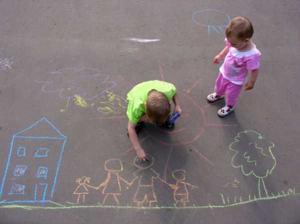 Рисование мелками на асфальте назвать лишь забавным занятием на улице нельзя. У детей совершенно другие ощущения во время рисования мелом, не такие, как при рисовании красками или карандашами. И им нравится сам процесс творчества, а не то, что в результате получится. Вот и доставьте малышам удовольствие.