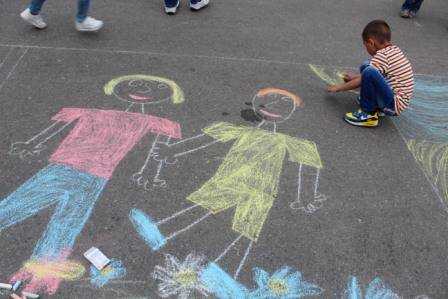 - Часто бывает, что места на асфальте не остается: так много всего нарисовали дети! Можно в первый день что-то не дорисовать, а затем завершать свой «шедевр» в последующие дни.