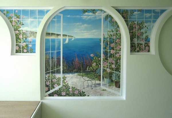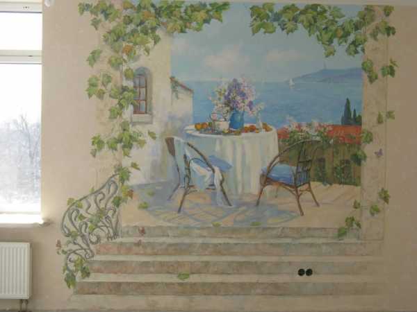 В кухне хорошо показали себя сюжеты с натюрмортами и старенькими городами. Это создает дополнительный уют. Рисунок в спальне должен вас расслабить и успокоить. Можно нарисовать ангелов или же цветы. Морские пейзажи дополнят ванную комнату. Панорамные пейзажи понравятся вашим гостям с первых минут пребывания в гостиной.