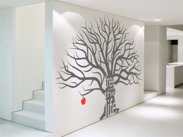 Рисунок дерева на стене: как сделать, фото интерьера