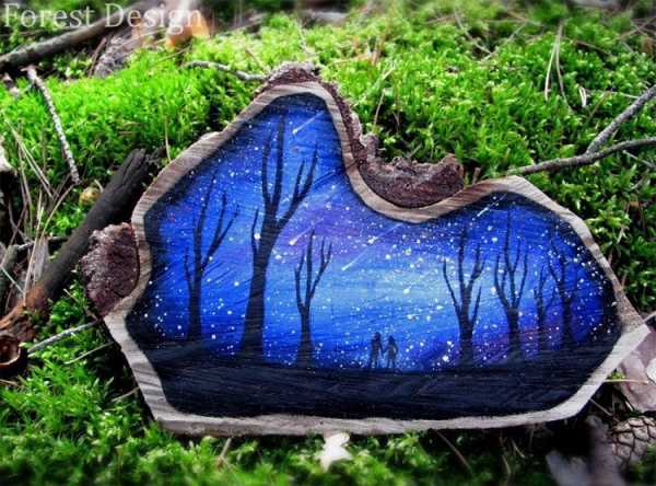 Эскиз готов и теперь мы можем взять в руки краски или карандаш и придать дереву большей выразительности и объемности.