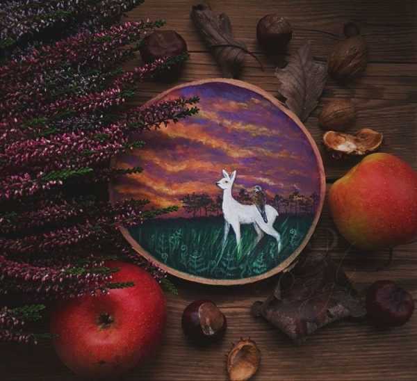 Листва, как несложно догадаться, формируется из настоящих листьев, которые наклеиваются на стену тем же ПВА. Для сохранности композиция покрывается прозрачным акриловым лаком.
