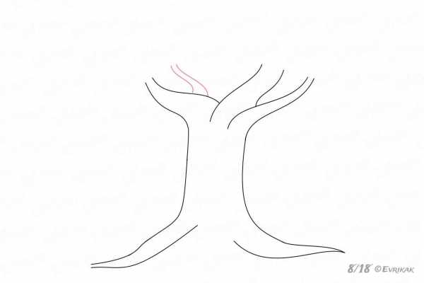 От нижней части левой ветви проведите вверх две изогнутые линии, изображая маленькую ветку, которая начинается именно от другой ветви.