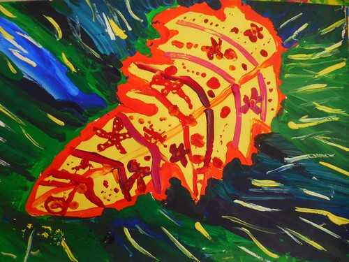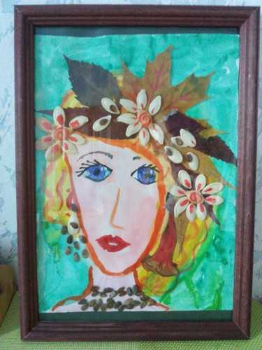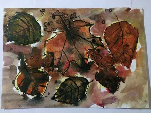 Рисунок гуашью с добавлением природных материалов -листьев.