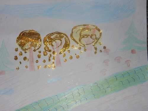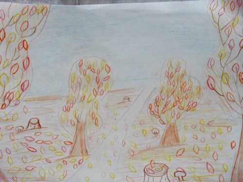 С наступлением осенней поры в садах и школах проходят тематические занятия по рисованию, а также всевозможные выставки, ярмарки, посвященные этому времени года. В зависимости от возраста детки рисуют свои картины так, как они это представляют, чаще всего после экскурсии в парк или лес.