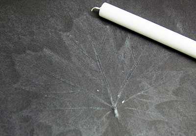 Там, где свеча соприкоснулась с прожилками листа, проявится его контур.