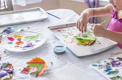 Методик рисования красками существует много. Можно опробовать их все по очереди. К примеру, ребенку будет интересно делать отпечатки-листики при помощи кусочка обычной губки для посуды. А еще интересный эффект можно получить, разбрызгивая краску с помощью зубной щетки.