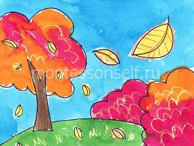 Посмотрите на видео красивые и яркие способы рисования на тему «осень»: