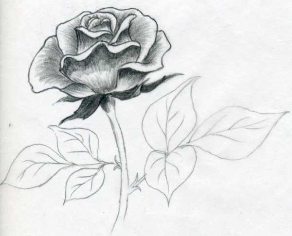 Красивая роза — рисунок карандашом