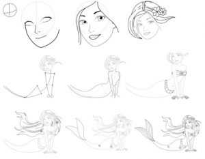 Рисуем русалочку поэтапно.