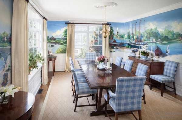 Фото: роспись стены в интерьере кухни, совмещенной со столовой