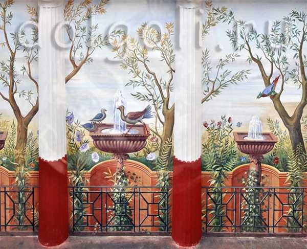 — Фреска. Рисунок наносится водорастворимыми красками по влажной штукатурке, которая после высыхания дает тонкий защитный слой по всей картине. Такую технику можно использовать для росписи бетонных, каменных и кирпичных стен. Работать нужно быстро, поэтому с фреской справится только профессиональный художник.