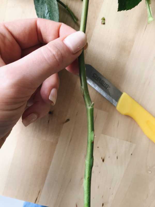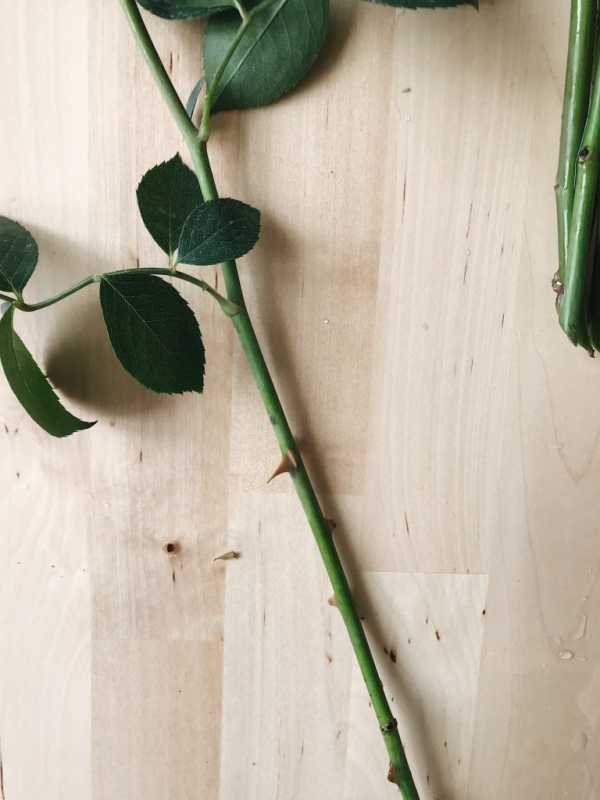 Зачищать ли стебель от шипов? Если вы планируете собирать букет из роз или как-то иначе взаимодействовать со стеблем, то для безопасности – зачищайте стебель от щипов. Если вы просто хотите поставить розы в воду, то шипы оставьте, чтобы лишний раз не травмировать стебель. Поврежденный стебель размножает бактерии в воде и быстро портится.