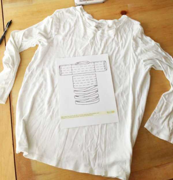 1. Отрежьте рукава футболки так, чтобы получился квадрат или не очень длинный прямоугольник.