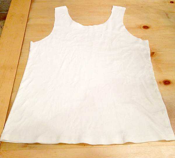 1. Если у вас майка с рукавами, нужно их срезать. Также срежьте верхнюю часть майки (у шеи).