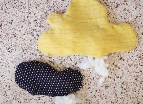 4. Соедините обе половинки свитера и сшейте их по краям, оставив небольшое отверстие для наполнения в середине нижней части (ровной) облака.