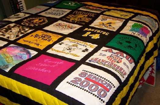 А можно, к примеру, смастерить целое покрывало из логотипов вырезанных с разных футболок