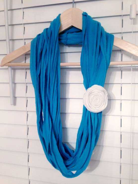 Далее смотрим на идеи из интернета и беремся за дело. Можно сделать из двух футболок отличное украшение -шарф