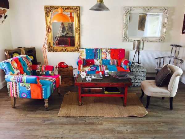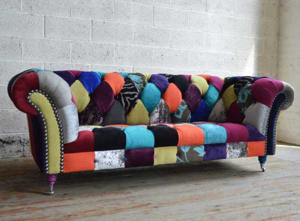 Если это стиль арт-деко в интерьере, которому присущи геометрические принты, узоры этно, разнообразие расцветок, эффектные орнаменты, современные материалы, то лоскутную обивку используйте для мягких кресел, стилизации пуфиков, кушеток.